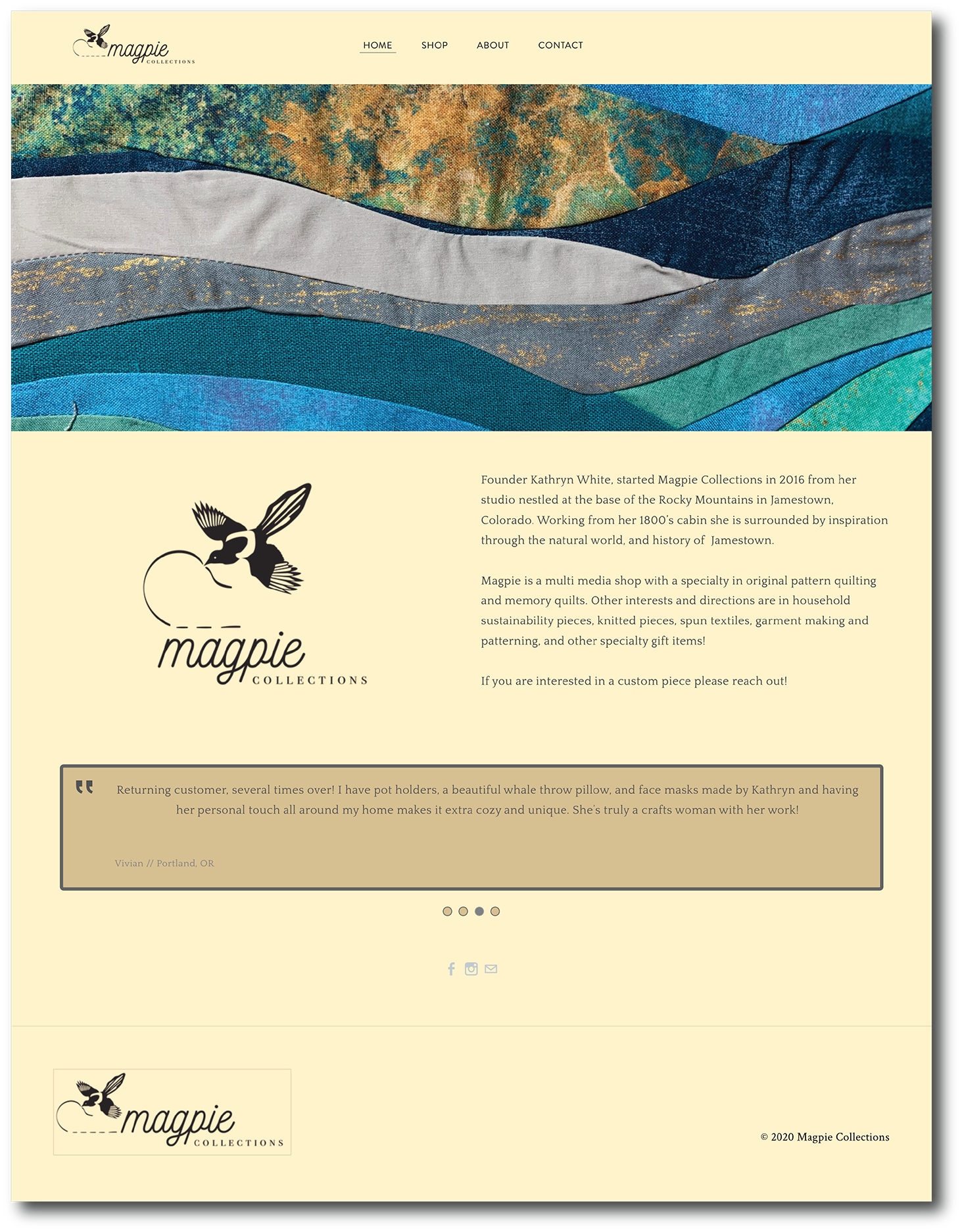 After being laid off during the COVID-19 pandemic, a hobby transitioned into a full time endeavor for Kathryn, the owner of Magpie Collections. Having worked previously with her on creating her brand identity, Kathryn reached out to me to help her build her website.
